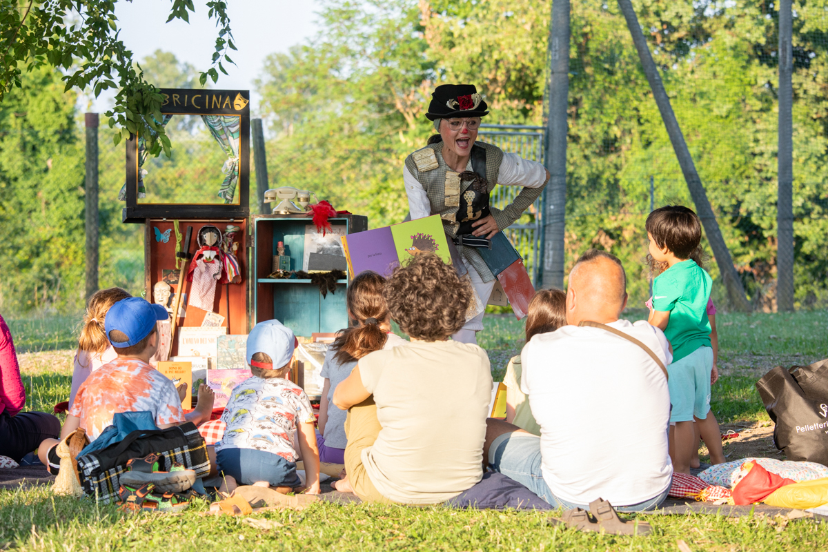 È capace di trasformare ogni racconto in un viaggio teatrale: i personaggi prendono vita, le pagine diventano paesaggi, e i bambini si ritrovano improvvisamente dentro le storie.